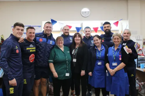 The team visited the hospice as part of their Community Blitz initiative. Phil Chadwick, representative for the club said, “I have been to a lot of the hospice events before and I know St. Rocco’s really well. Our fans and the Warrington community only see what the players do in the 80 minutes of the rugby game, and they are often judged on just that performance. Over the years that I have worked with Warrington Wolves, I have never met a player who wasn’t a nice person. We love to support local charities like St Rocco’s and the players want to get involved and have a real willingness and drive to help community initiatives.”