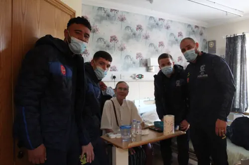 Sam bought along Gil Dudson, Zane Musgrove, Josh Thewlis and Luke Thomas along with other members of the rugby club. They arrived at the hospice with treats to donate as part of their drive to support the community.